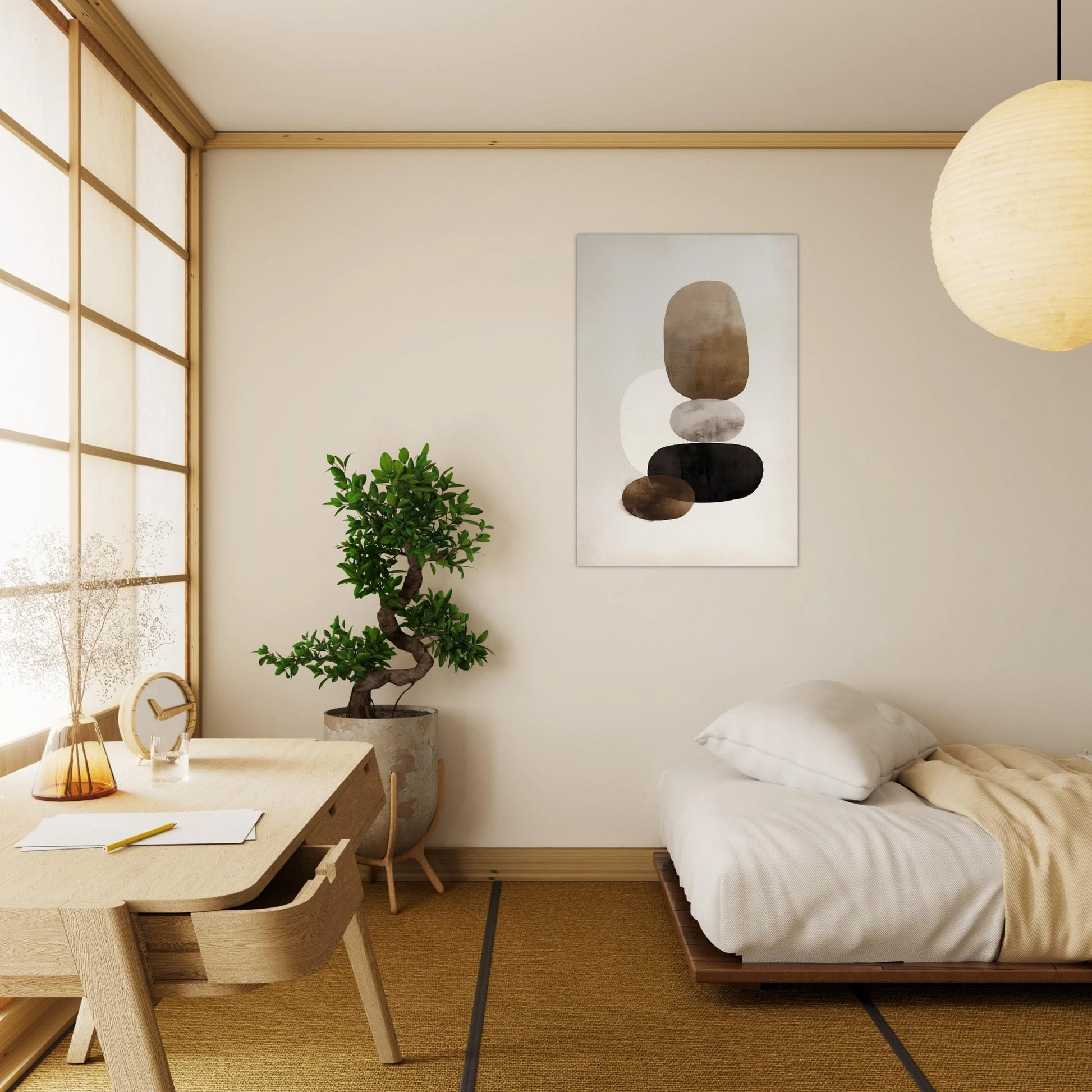 Meet the Japandi Wall Art Fine Art Poster Serene Garden Elegance (20238), a beautiful piece that effortlessly combines minimalist style with the calming vibes of nature. Drawing inspiration from the peaceful designs of Isamu Noguchi, this artwork brings to life the quiet beauty of a simple stone resting in a serene garden, inviting you to pause and find a moment of calm. Its organic, asymmetrical shapes are paired with gentle earth tones like brown and off-white, creating a soothing visual that’s easy on the eyes. The delicate textures mimic natural materials, making this fine art poster a wonderful way to add a touch of elegance and tranquility to any space. Created with cutting-edge giclée 12-color printing technology, it delivers rich, vibrant colors and impressive depth that go beyond typical prints. With a smooth matte finish, the poster reduces glare and keeps the focus on the design, while the sturdy 200 gsm (80 lb) paper gives it a premium feel. Plus, it’s printed on eco-friendly, FSC-certified paper, so you can enjoy beautiful art while being kind to the planet.