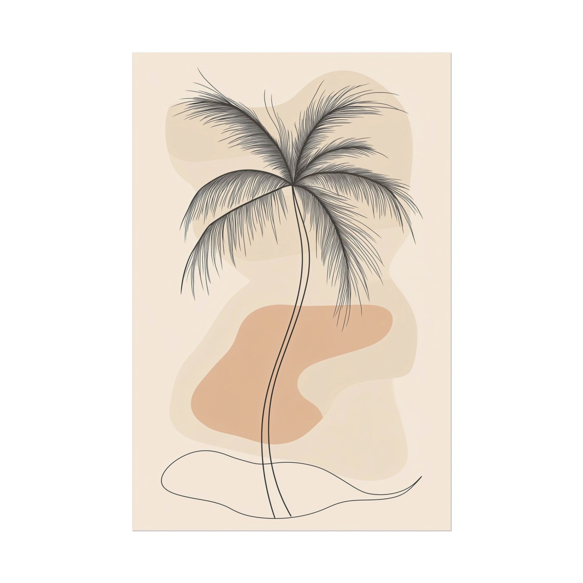 Rendered in a soft sandy beige palette, this artwork offers a gentle contrast with its thoughtfully chosen accent tones, enhancing its dreamy allure. The understated background lets the striking silhouette of the palm tree shine, making it an ideal addition to any contemporary space. If you’re looking to cultivate a calming ambiance in your home, this line art poster effortlessly combines clean geometric shapes with the organic flow of nature, inviting you to sit back, relax, and unwind in style.