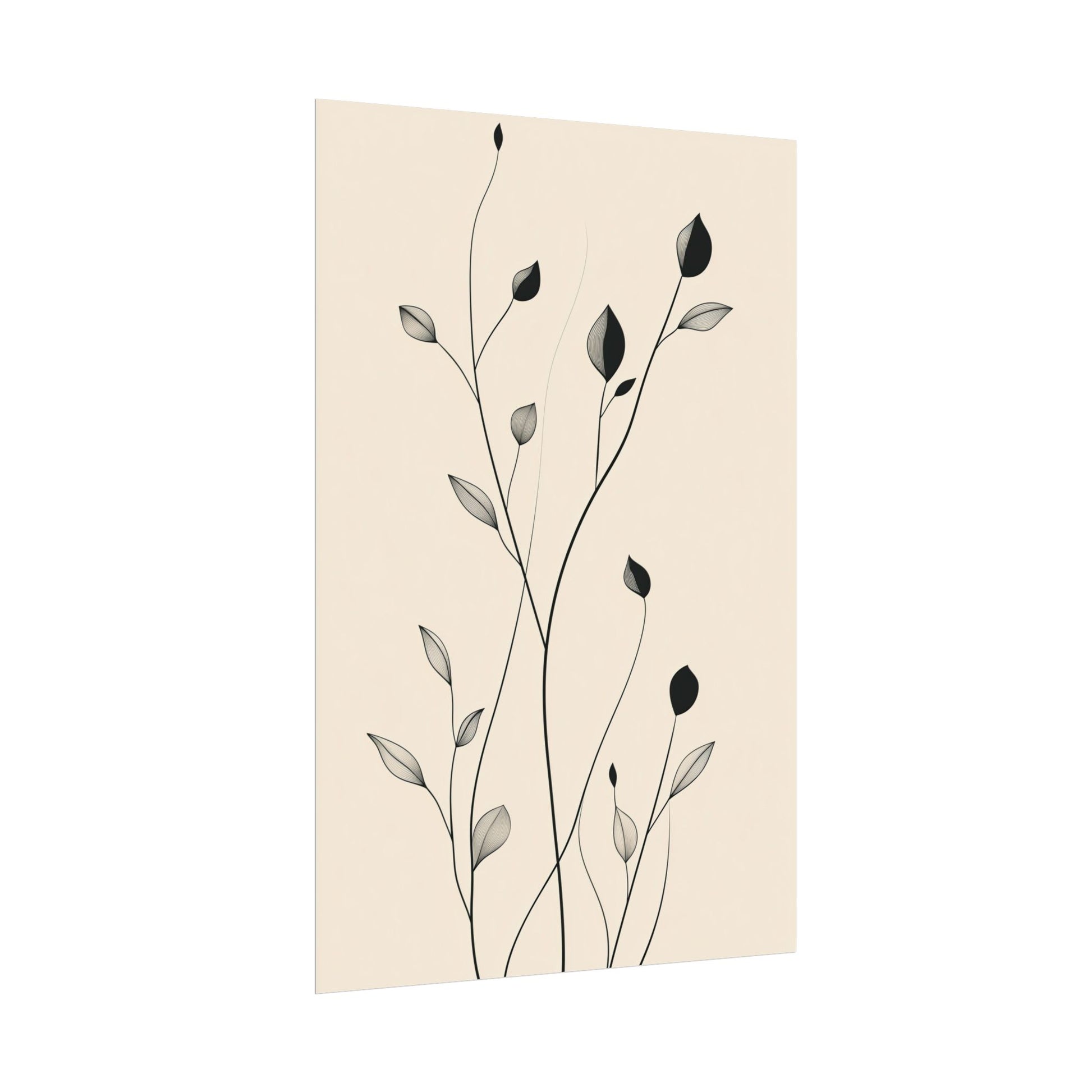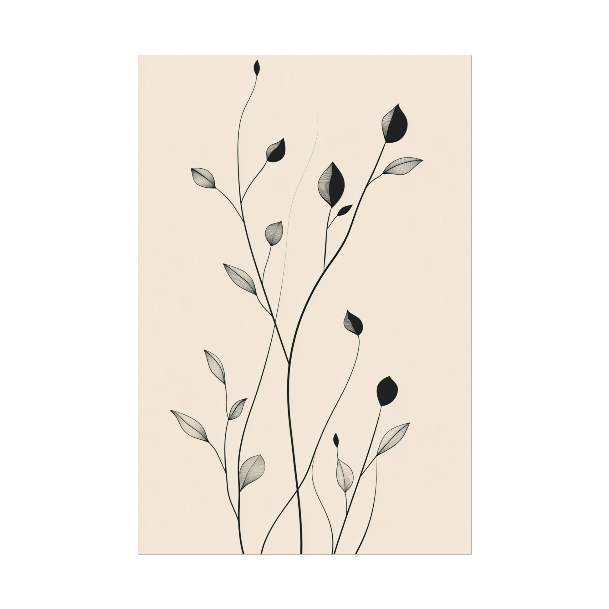 Minimalist Botanical Line Art Print Poster – Elegant Black & Beige Wall Decor (30001)